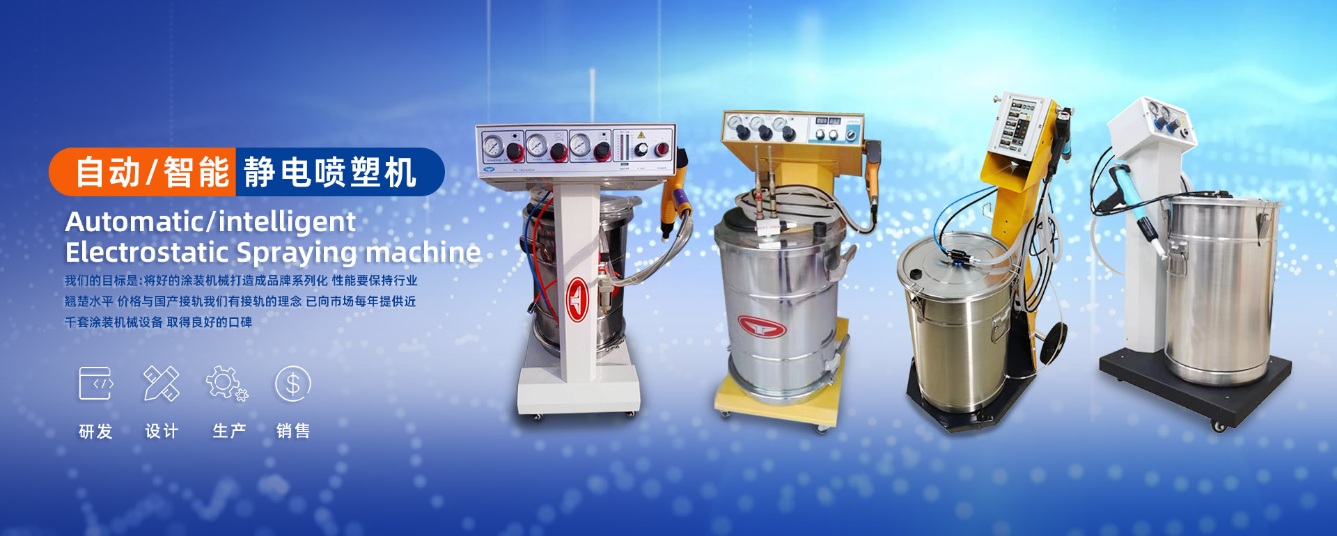 特勇涂裝機(jī)械設(shè)備(上海)有限公司 是一家專(zhuān)業(yè)研發(fā),設(shè)計(jì),生產(chǎn),銷(xiāo)售靜電噴塑機(jī),自動(dòng)靜電噴塑機(jī),智能靜電噴塑機(jī),,以及定制各款涂裝設(shè)備的生產(chǎn)廠家。位于上海市嘉定區(qū)城北工業(yè)區(qū),公司擁有國(guó)外先進(jìn)的工藝流程,與一支專(zhuān)業(yè)高學(xué)歷的技術(shù)團(tuán)隊(duì),經(jīng)多年的開(kāi)發(fā),設(shè)計(jì),產(chǎn)品的升級(jí)。相信我們一定能為您提供價(jià)優(yōu),可靠放心的產(chǎn)品。主營(yíng):靜電噴塑機(jī)!全自動(dòng)靜電噴塑機(jī)!涂裝設(shè)備!不銹鋼粉桶!以及相關(guān)配件供應(yīng)。我們的目標(biāo)是,將好的涂裝機(jī)械打造成品牌系列化,性能要保持行業(yè)翹楚水平,價(jià)格與國(guó)產(chǎn)接軌,我們有接軌的理念,已向市場(chǎng)每年提供近千套涂裝機(jī)械設(shè)備,取得良好的口碑。